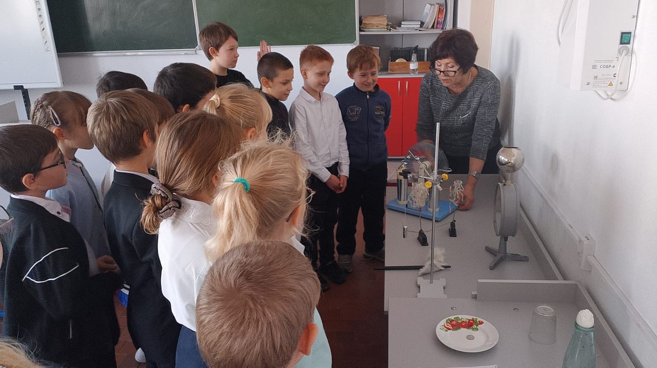 Оксана Анатольевна познакомила ребят с увлекательной наукой химия. Продемонстрировала ряд интересных опытов: "Качественные реакции", "Заживление раны». Экскурсия принесла третьеклассникам массу положительных впечатлений.